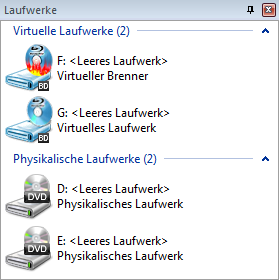 | ► | nur virtuelle und physikalische Laufwerke mit Medium angezeigt werden. |